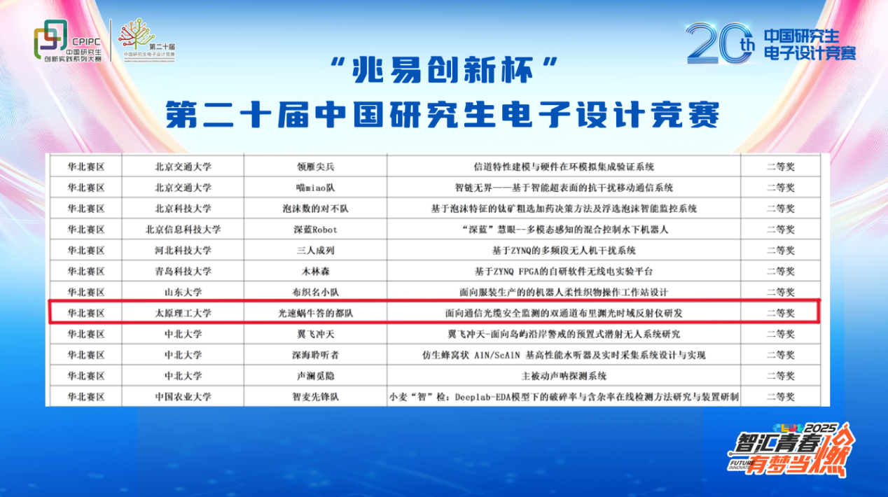 2025年8月14至17日,由教育部学位与研究生教育发展中心指导,中国学位与研究生教育学会、中国科协青少年科技中心、中国电子学会共同主办的“兆易创新杯”第二十届中国研究生电子设计竞赛全国总决赛在深圳信息职业技术大学圆满落幕,经过分赛区初赛、复赛和总决赛的层层角逐,澳门网投官方网站斩获全国二等奖1项。