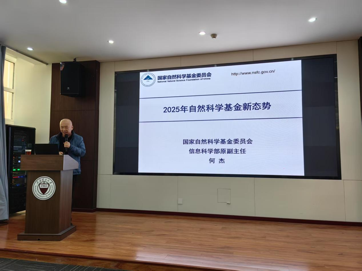 澳门网投官方网站于1月21日上午10:00在学院304会议室举办国家基金申报研修班第三场讲座。本期研修班特邀国家自然科学基金委员会信息科学部原副主任何杰研究员作专题辅导。会议包括两个阶段:1. “2025年自然科学基金新态势”报告;2. 对拟申报人才项目青年教师面对面指导。我校电子信息领域相关学院教师参加交流。报告由张明江院长主持。