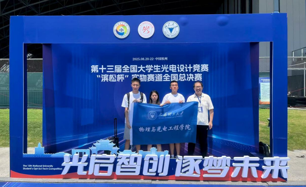 2025年8月22日,第十三届全国大学生光电设计竞赛决赛在浙江大学紫金港校区落下帷幕。来自澳门网投官方网站的“越测越精”队——薛梦哲、刘江宇、周汇旋和团队指导老师——吴宇坤、时秋峰,凭借其出色的创新设计与稳定的临场发挥,从众多顶尖队伍中脱颖而出,一举夺得全国一等奖的骄人成绩。
